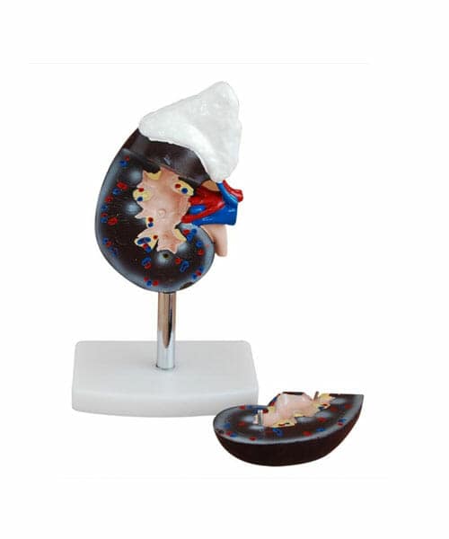This model shows kidney, ureters, urinary bladder, uterus, accessories of uterus, vagina, ovary membrane, ligaments, uterus ligament and its artery etc. Made of PVC plastic.